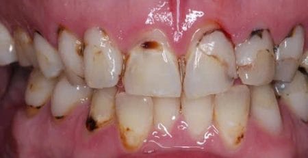- Xuất hiện những đốm đen trên bề mặt răng.