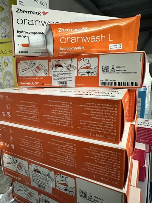 - Cao su lỏng Oranwash L dùng lấy dấu các chi tiết trong phục hình cố định và phục hình tháo lắp