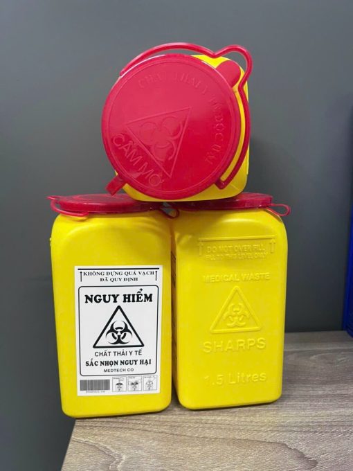 Bình nhựa huỷ kim tiêm, vật sắc nhọn dùng trong nha khoa 1.5L